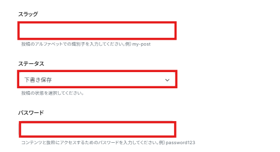 コンテンツの箇所にはWordPressに入稿したい内容を入力しましょう。