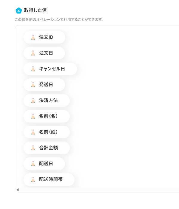 取得した値は、後続のオペレーション設定時の値としてご利用いただくことができ、フローボットを起動する度に、変動した値となります。