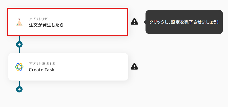 先ほどの画面で「OK」をクリックして、表示された画面のアプリトリガー「注文が発生したら」をクリックしましょう。