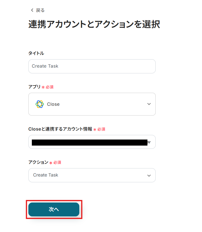 Jotformの回答内容をもとにCloseにタスクを登録する