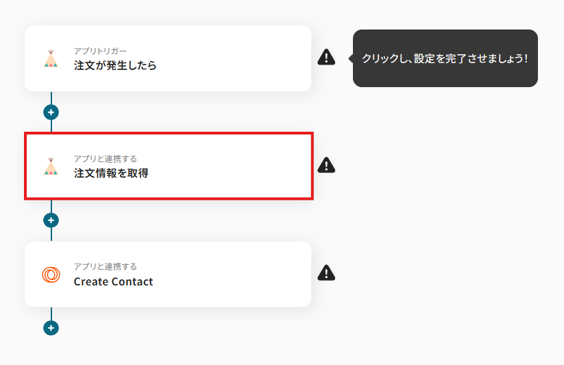 1.アプリと連携する「注文情報を取得」をクリックしましょう。