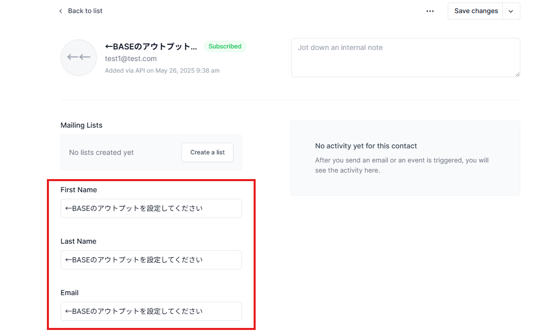 この自動連携を利用すれば、BASEで注文が確認されると同時に、購入者の氏名、メールアドレス、購入商品などの情報がLoopsに自動でContactとして作成されます。