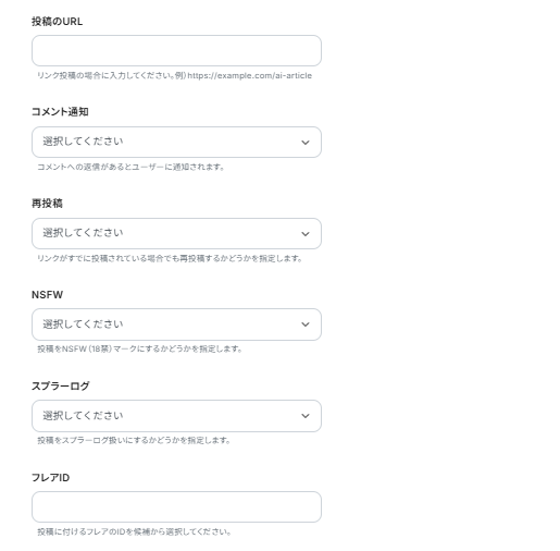 最後にサブレディットに新規投稿を作成するための設定を行います。