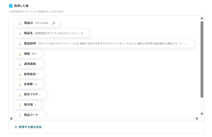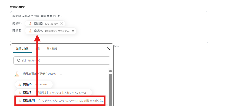 取得した値を使用すると、BASEの内容を簡単に入力できます。