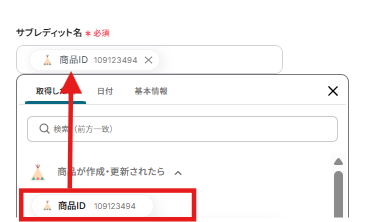 サブレディット名には、BASEから取得した商品IDを取得した値から選択しました。