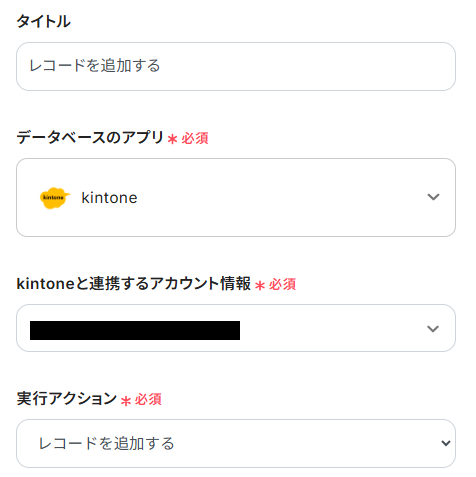 2.画面が遷移するので、レコードを追加するkintoneについて設定しましょう!