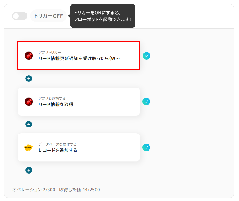 このワークフローを活用すれば、BowNowでのリード情報更新をきっかけに、kintoneへのレコード追加が自動化されるため、作業をスムーズに進めるための一助となります。