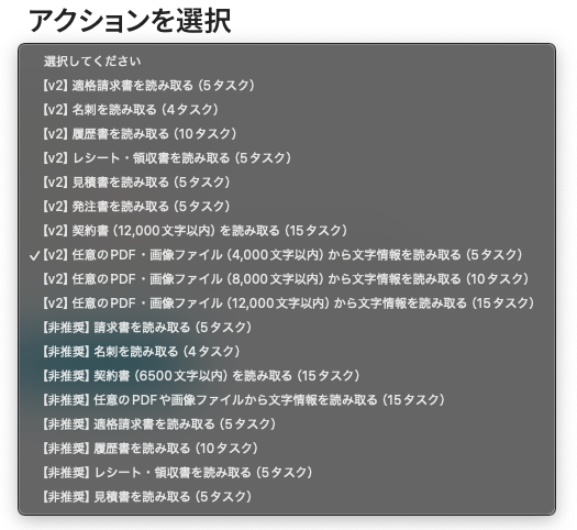 ・OCRまたは音声を文字起こしするAIオペレーションはチームプラン・サクセスプランでのみご利用いただける機能となっております。フリープラン・ミニプランの場合は設定しているフローボットのオペレーションはエラーとなりますので、ご注意ください。