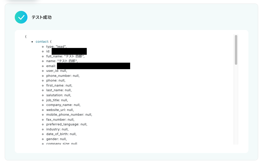 結果に、コンタクトが作成または更新されたことが表示されます。