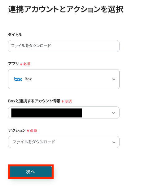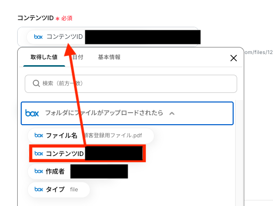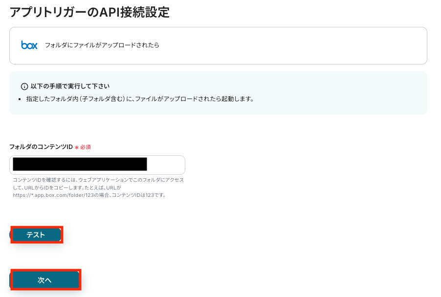 注釈に沿って、BoxフォルダのコンテンツIDを入力します。
