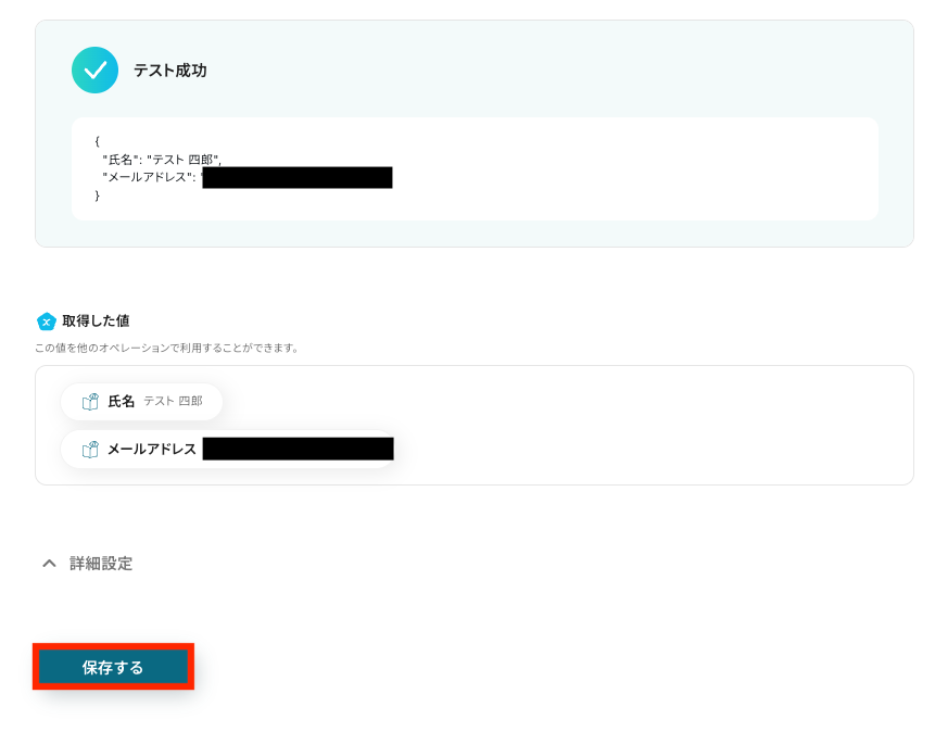 結果に、氏名とメールアドレスが表示されていればOKです。