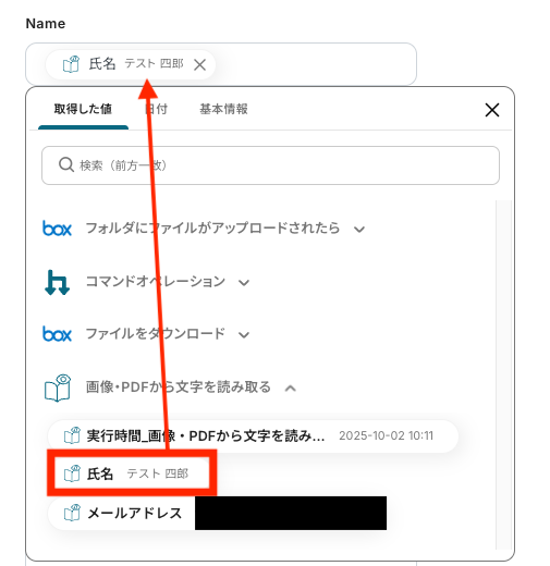 ※取得した値とは、トリガーやオペレーションにて取得した値を指します。