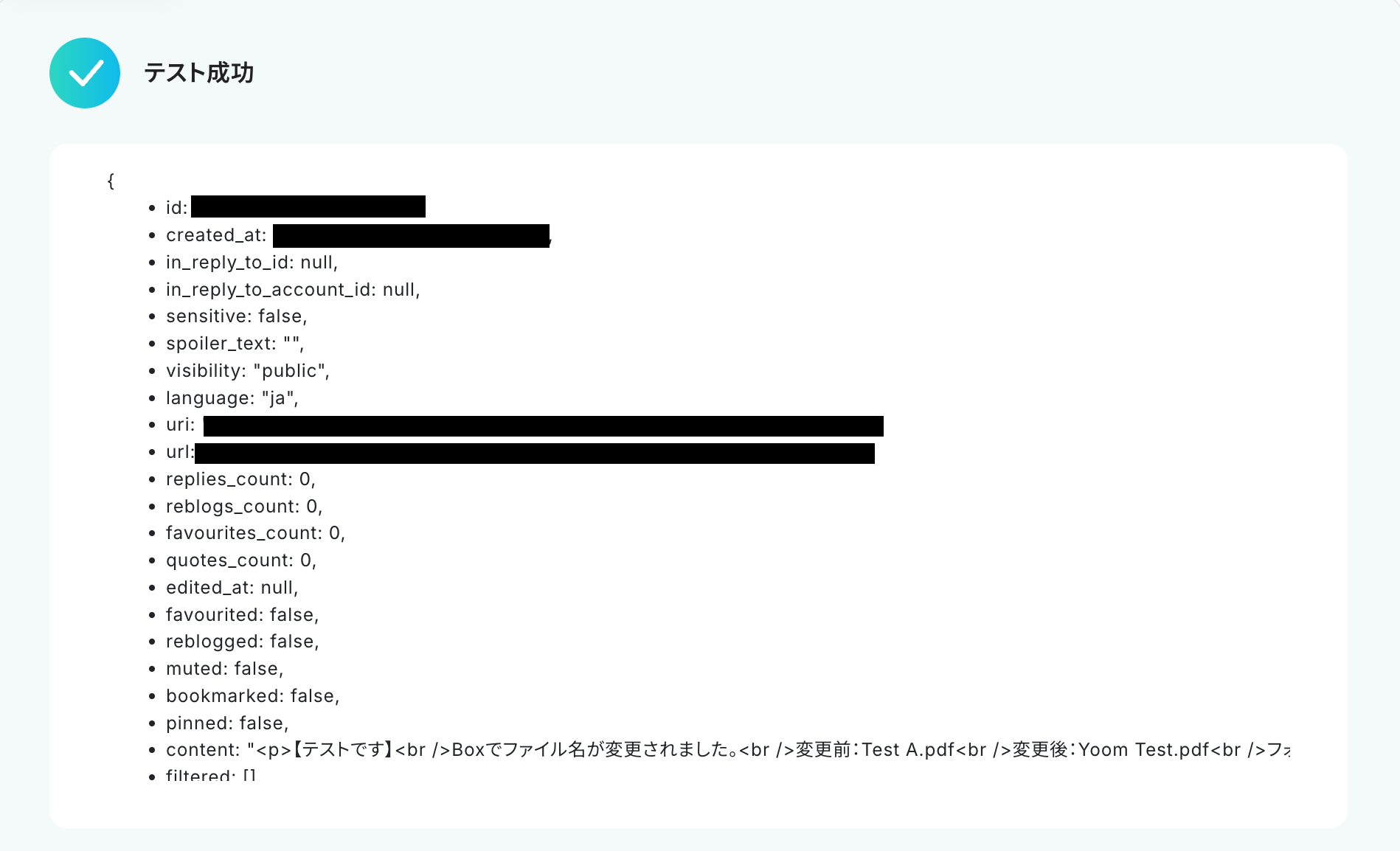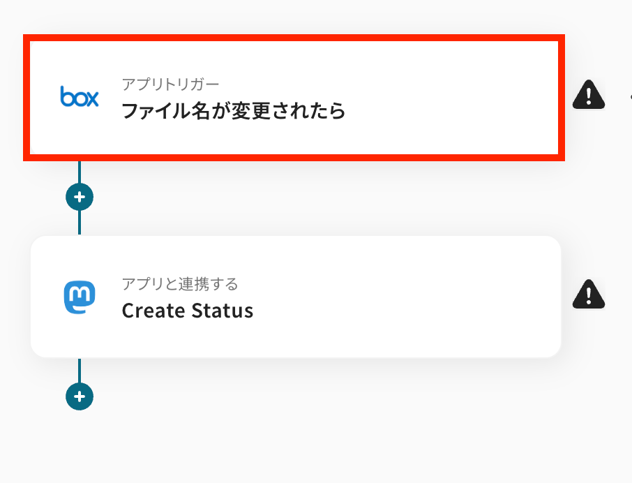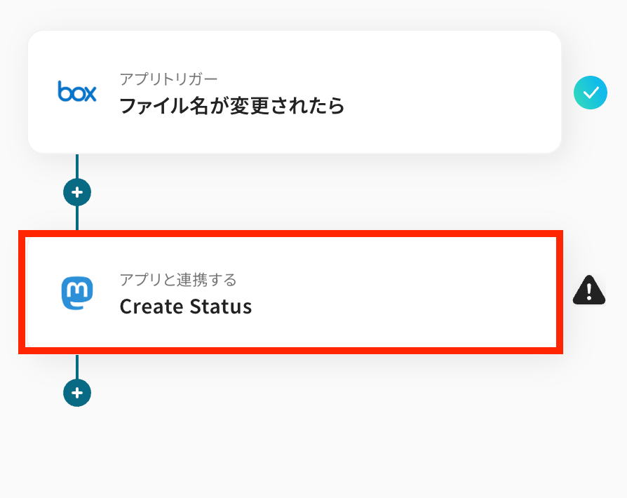 このワークフローを活用すれば、Boxでファイル名が変更されると、自動でMastodonへStatusを作成するため、迅速かつ正確な情報共有が可能になります。