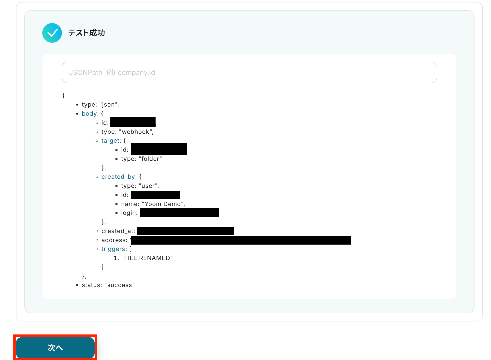 Boxの準備が出来たら、Yoomの設定画面に戻ります!