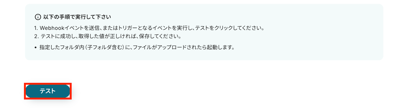 なお、このテストは、BoxのAPIを使って「フォルダの追加などのイベントをリアルタイムに検知するWebhook通知の設定」が正しく行われるかどうかを確認するものです。