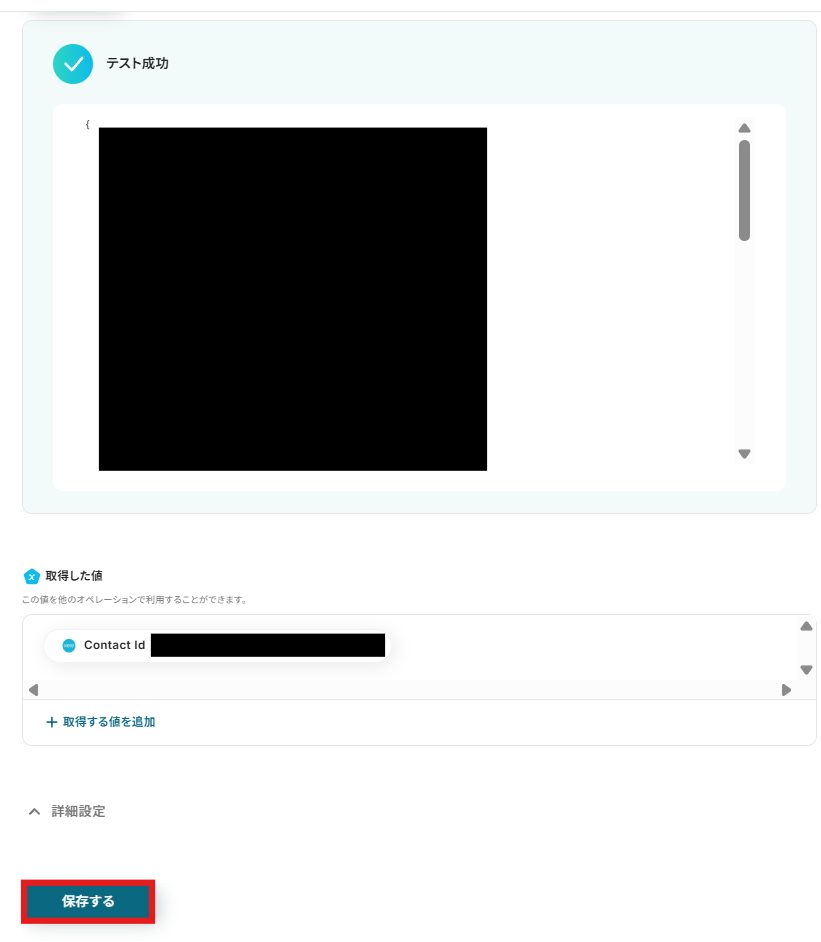 なお、取得した値を活用せず手入力すると、ずっと同じ値が入ったContactsがされてしまうため注意が必要です。
