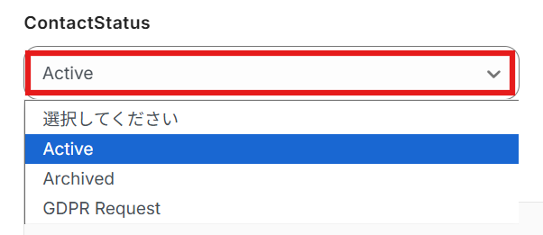 ContactStatusはプルダウンから選択します。