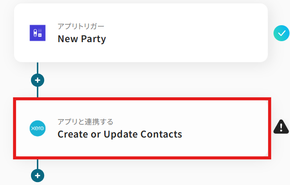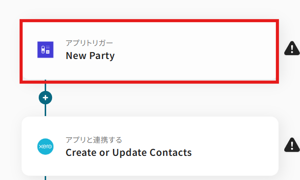 次に、追加されたNewPartyの情報をもとに、XeroでContactsを作成するアクションの設定を進めていきましょう。