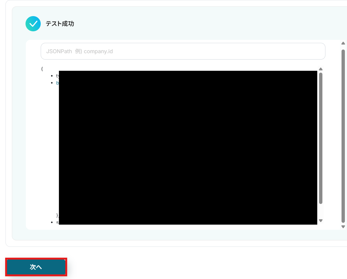 成功したら「次へ」をクリックして進みましょう。
