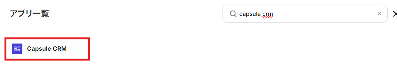 検索ボックスにCapsule CRMと入力し、アプリをクリックしてください。