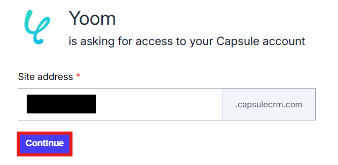 Site addressはCapsule CRMにログイン後のURLを参照してください。