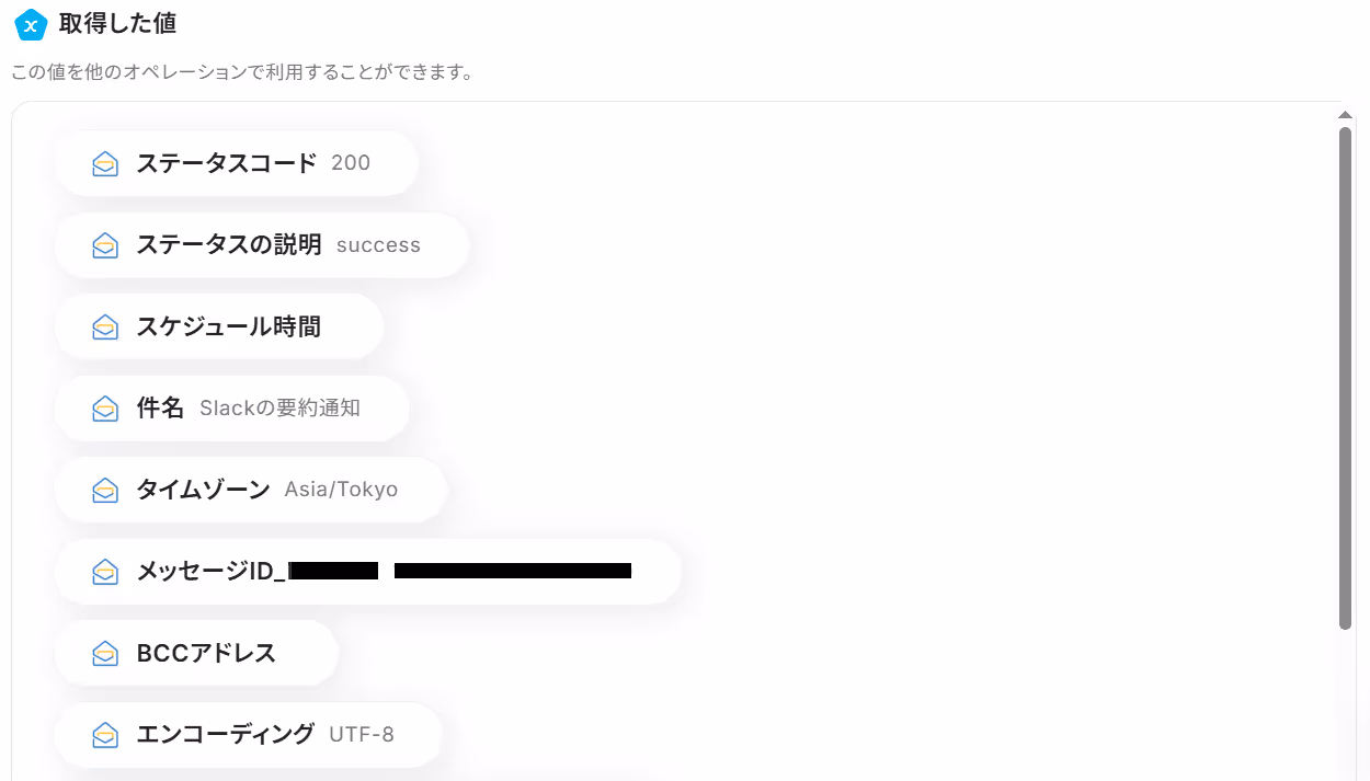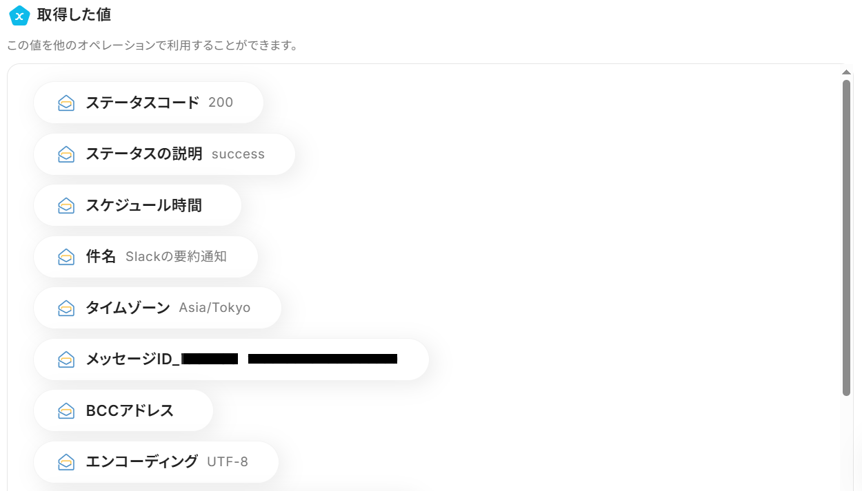 ※取得した値とは、トリガーやオペレーション設定時に、「テスト」を実行して取得した値のことです。後続のオペレーション設定時の値として利用でき、フローボットを起動する度に変動した値となります。