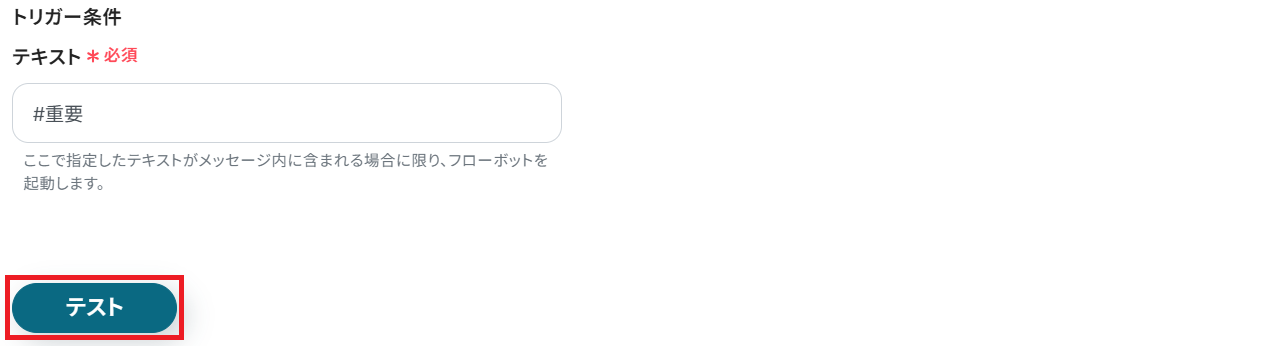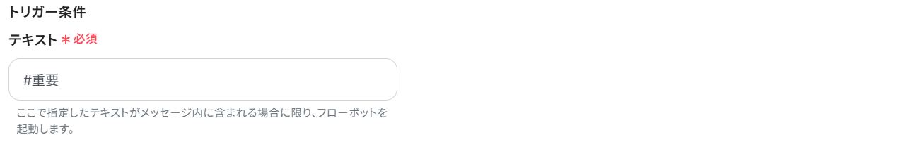 今回は例として「#重要」というテキストが含まれている場合にフローボットを起動するよう設定しています。