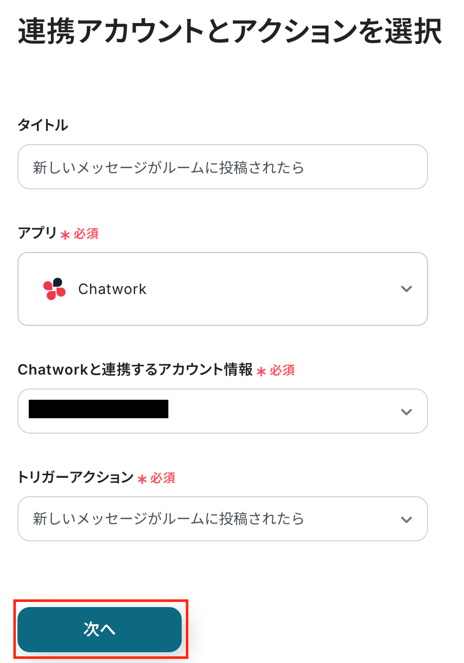 次の画面で、「トリガーの起動間隔」と「ルームID」を入力します。