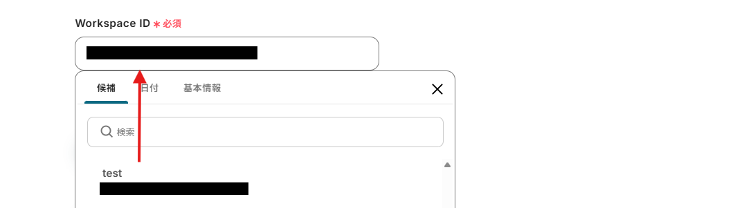 Workspace IDは、枠内をクリックして表示される候補から選択しましょう。