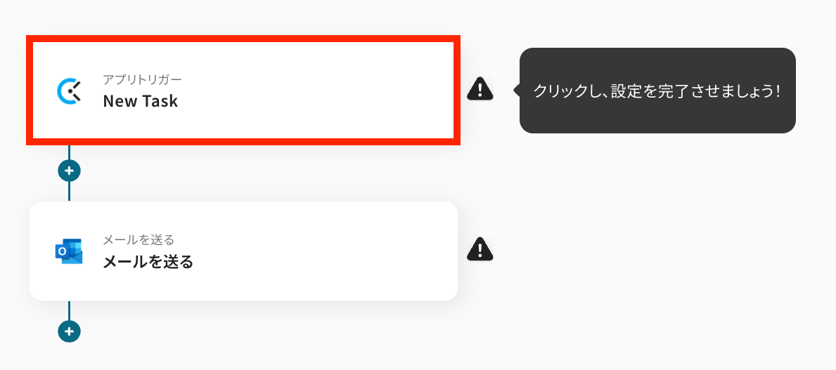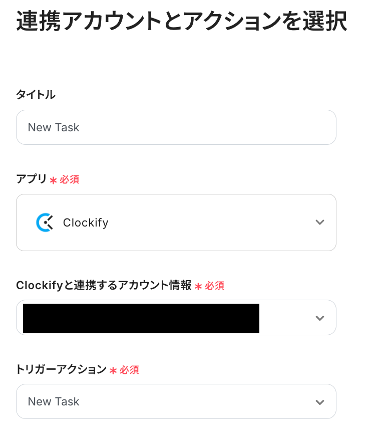 「トリガーアクション」:デフォルトで「New Task」が選択されるので、そのままでOKです!