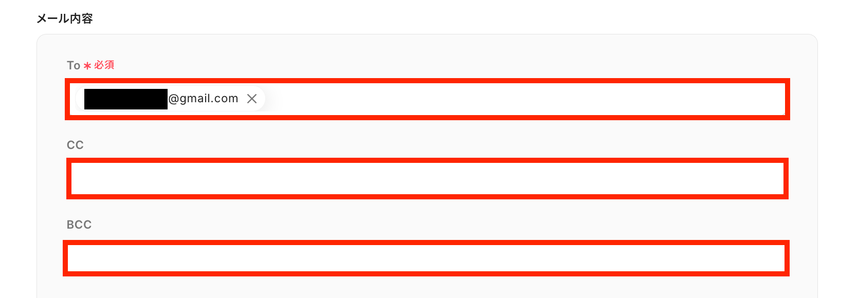 送信先のアドレスを「To」に任意のアドレスを設定してください。