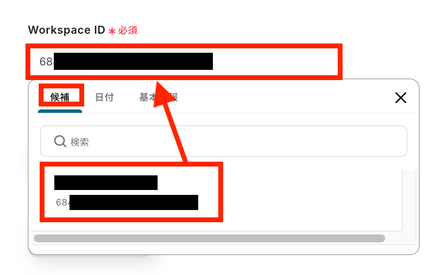 入力欄をクリックすると、候補一覧が表示されるので連携したいIDを選択してください。