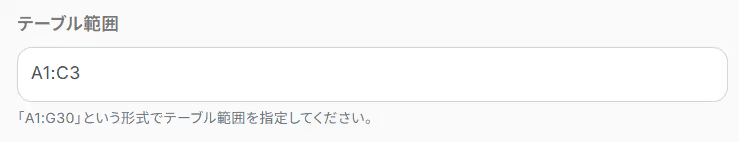 テーブル範囲:レコードの取得において、指定したい範囲を入力しましょう。「A:C」といった設定も可能です。