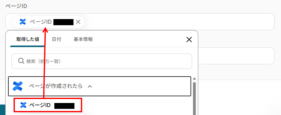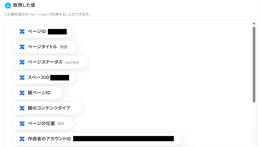 また、「取得した値」タブを選択することでConfluenceで取得した情報を活用することも可能です。