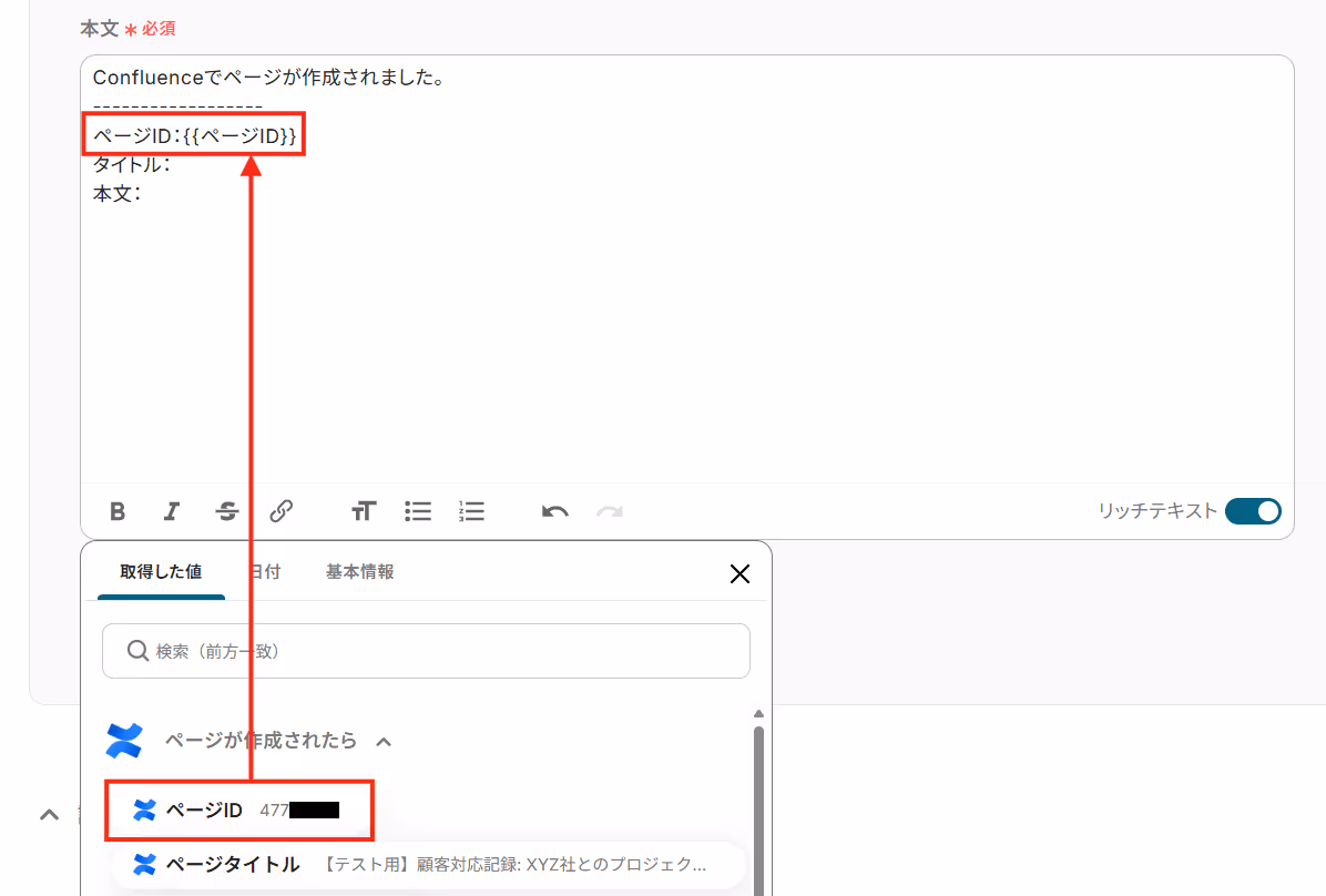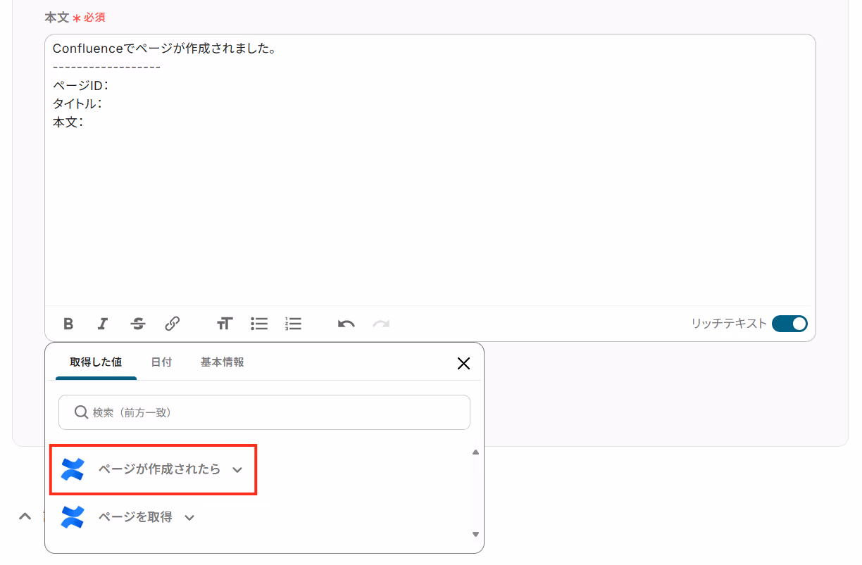 トリガーアクションでは作成されたページの内容は取得できていないため、次のアクションでページ内容を含む詳細情報を取得していきましょう。
