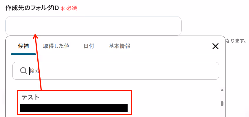 次に、先ほど取得したConfluenceの情報を活用して、Google Driveにフォルダを作成する設定を行います。