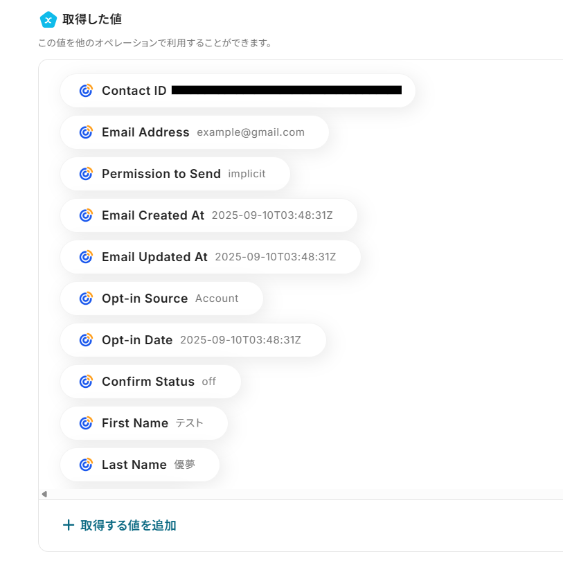 ※後続のConstant Contactのトリガー設定時のテストで必要になります。