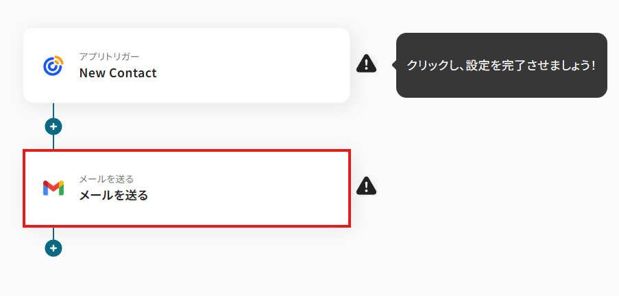 このテンプレートを利用すれば、新規コンタクトが追加された際に、その情報を自動でGmailに送信できるため、手作業による通知業務をなくし、スムーズで確実な情報共有体制を構築できます。