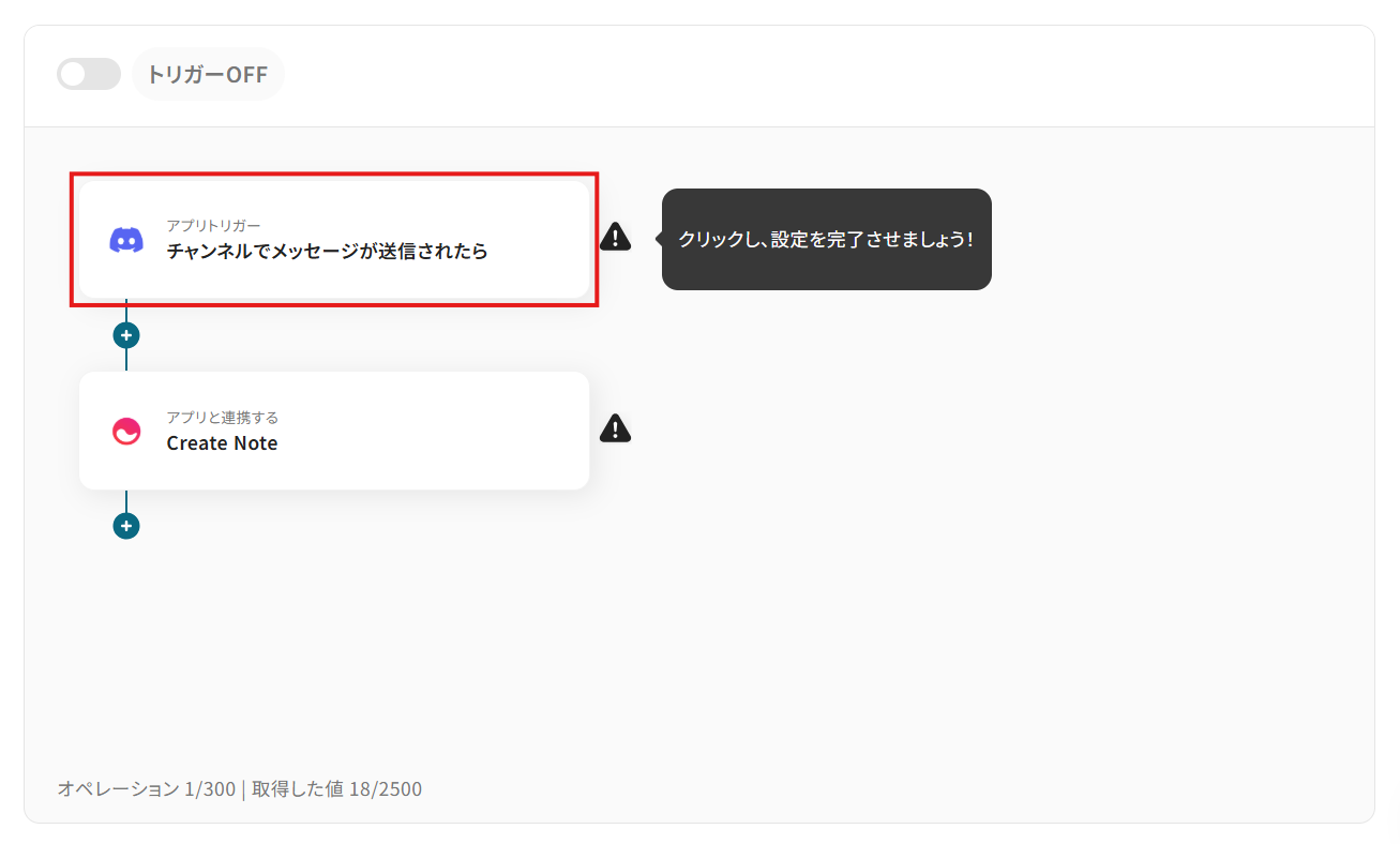 - Discordのトリガー設定では、ノート作成の対象としたいチャンネルを任意で設定してください。