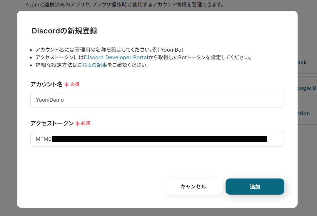 - Discord、MemのそれぞれとYoomを連携してください。