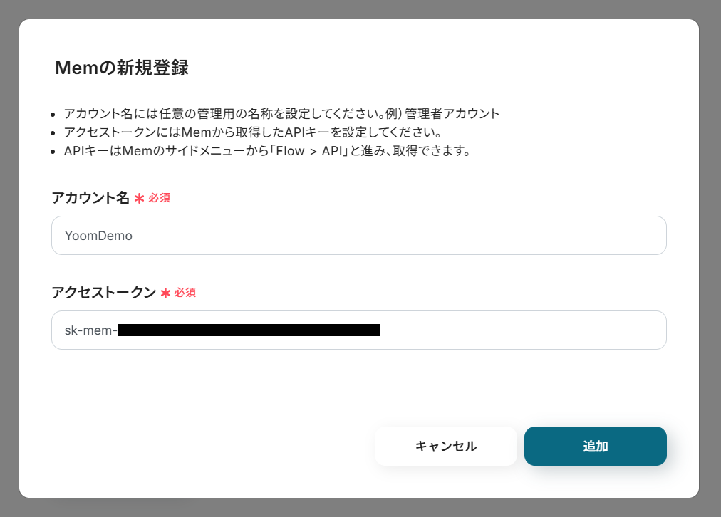 - Mem、GeminiのそれぞれとYoomを連携してください。