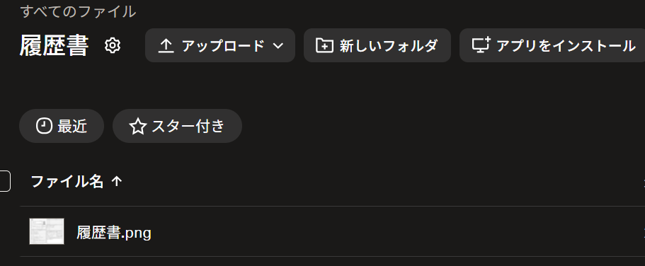 今回のトリガーは「特定のフォルダ内でファイルが作成または更新されたら」なので、Dropboxに履歴書をアップロードしておきます。