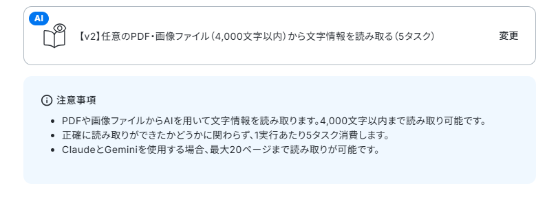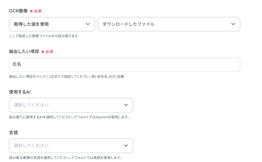 ※OCRや音声を文字起こしするAIオペレーションは、チームプラン・サクセスプラン限定の機能です。フリープランやミニプランでセットするとエラーになってしまうので、ご注意ください。