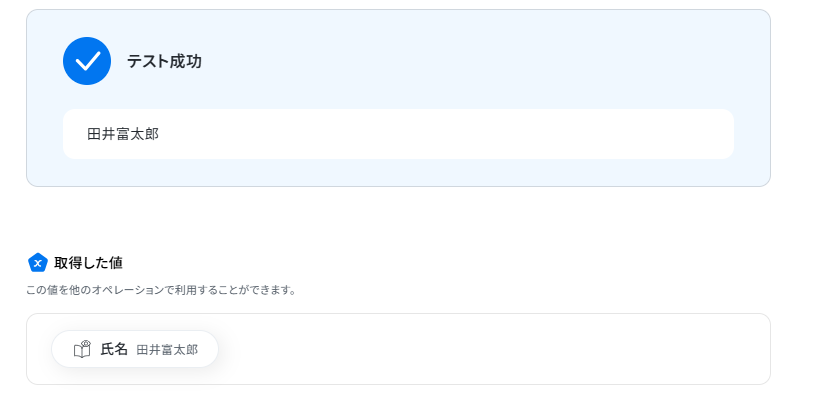 テストが成功し、メールの情報が取得した値に入ればOKです。