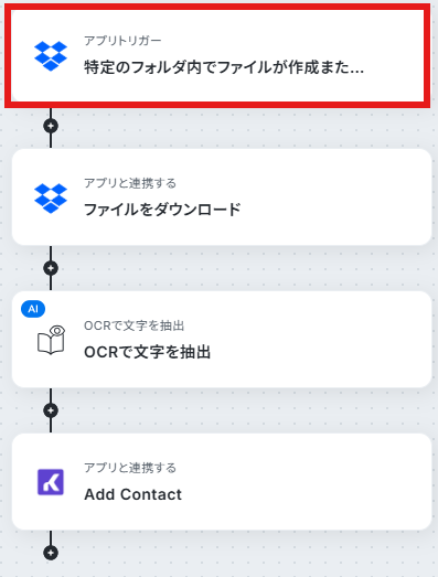 今回はDropboxに履歴書が追加されたらOCRして、KommoにContactを追加するフローを作成していきます!