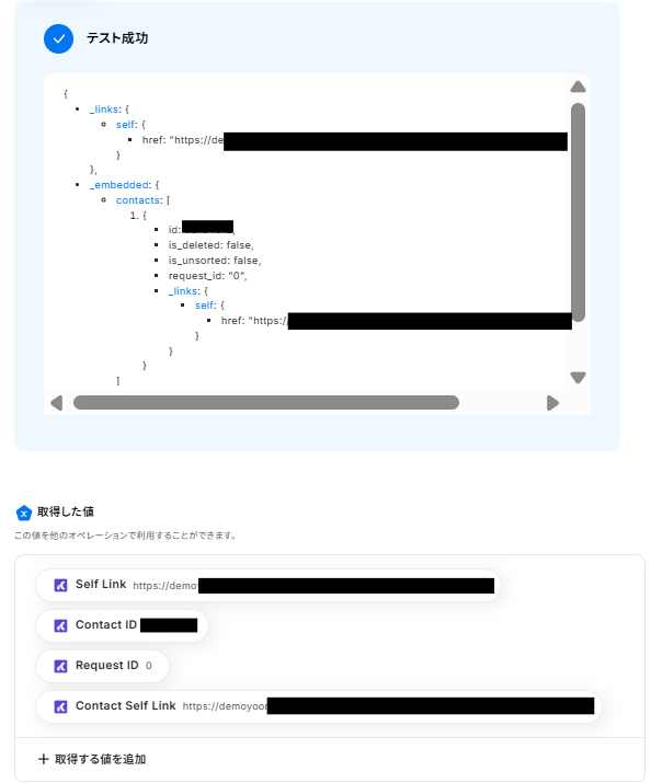 ここまで終わったらテストボタンをクリックしましょう。テストが成功し、「抽出したい項目」が取得した値に入ればOKです。