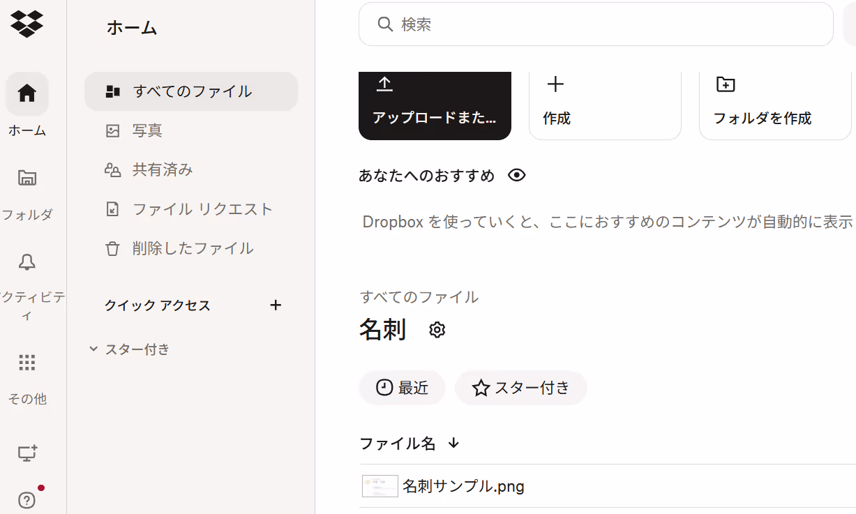 今回は例として「名刺」フォルダを作成し、名刺のサンプル画像をアップロードしました。