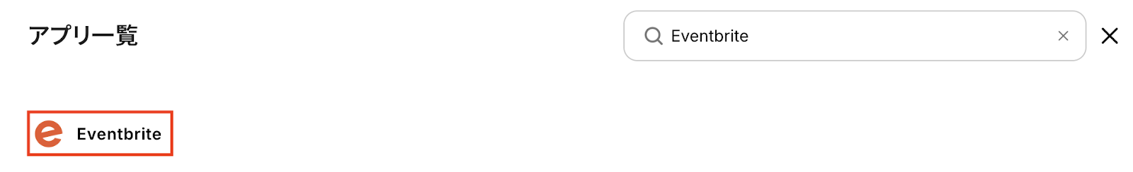 新規接続をクリックしたあと、アプリのメニュー一覧が表示されるのでEventbriteと検索し対象アプリをクリックしてください。