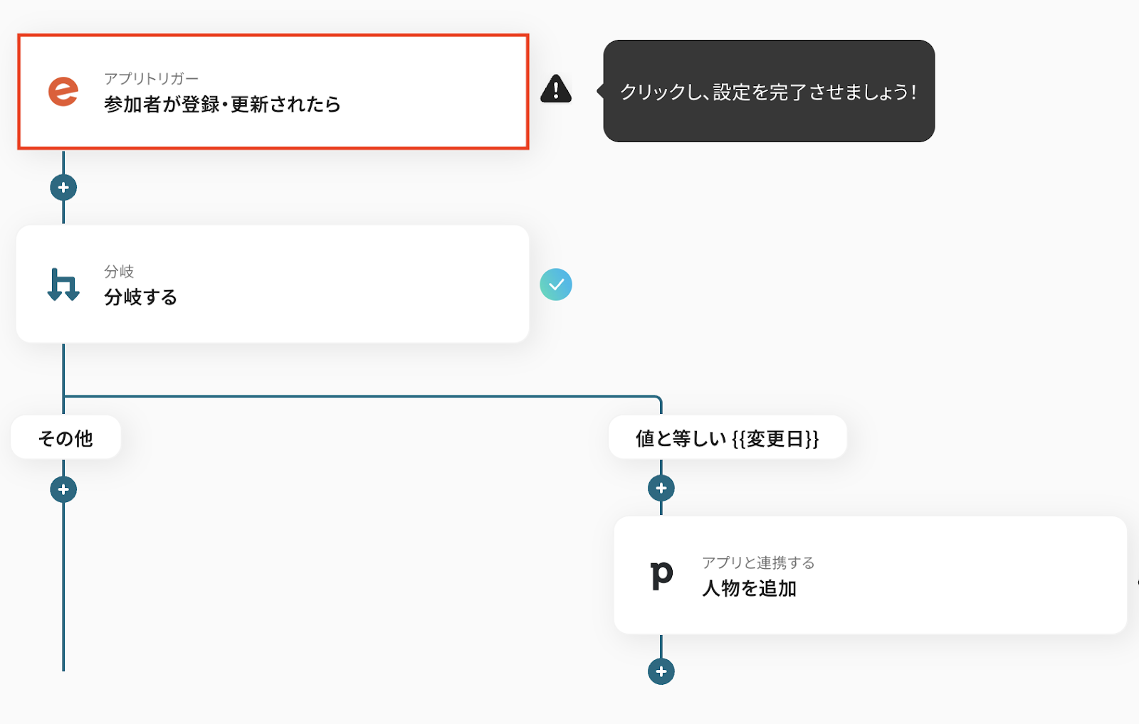 それでは、ここから設定を進めていきましょう。 「参加者が登録・更新されたら」をクリックします。