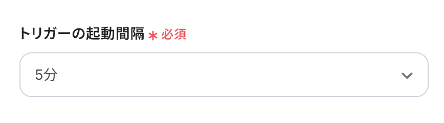 トリガーの起動タイミングは、5分、10分、15分、30分、60分のいずれかで設定できます。 ご利用プラン によって、設定できるトリガーの最短間隔が異なるため、その点は要チェックです。 なお、基本的にはそのプランの最短の起動間隔にしてお使いいただくことをおすすめします。
